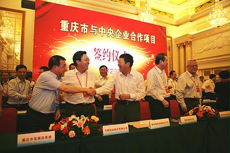 5月16日下午,重慶市與中央企業(yè)項(xiàng)目合作簽約儀式在渝隆重舉行,標(biāo)志著雙方的戰(zhàn)略合作進(jìn)入全面發(fā)展、深入推進(jìn)的全新階段。國(guó)務(wù)院國(guó)資委主任王勇和重慶市市長(zhǎng)黃奇帆講話(huà),國(guó)務(wù)院國(guó)資委副主任邵寧、黃丹華出席儀式。 王勇在講話(huà)中指出,本次合作簽約儀式是重慶市和中央企業(yè)在黨中央、國(guó)務(wù)院的正確領(lǐng)導(dǎo)下,深入實(shí)施國(guó)家新一輪西部大開(kāi)發(fā)戰(zhàn)略和重慶三大定位、一大目標(biāo)、四大任務(wù)的“314”總體部署而舉行的一次重要會(huì)議,對(duì)于進(jìn)一步促進(jìn)重慶與中央企業(yè)的戰(zhàn)略合作,實(shí)現(xiàn)重慶與中央企業(yè)的科學(xué)發(fā)展、跨越發(fā)展具有重要意義。重慶是中央企業(yè)分布比較集中的地區(qū)之一,多年來(lái),在渝中央企業(yè)不斷發(fā)展壯大,已經(jīng)成為推動(dòng)重慶經(jīng)濟(jì)社會(huì)發(fā)展、促進(jìn)產(chǎn)業(yè)轉(zhuǎn)型升級(jí)和建設(shè)現(xiàn)代產(chǎn)業(yè)體系建設(shè)的重要組成部分。中央企業(yè)的快速發(fā)展離不開(kāi)地方的幫助和支持,中央企業(yè)理應(yīng)為地方經(jīng)濟(jì)社會(huì)發(fā)展做出更大的貢獻(xiàn)。