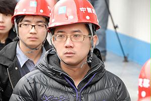國(guó)資委機(jī)關(guān)青年志愿者與喬老在工地前合影