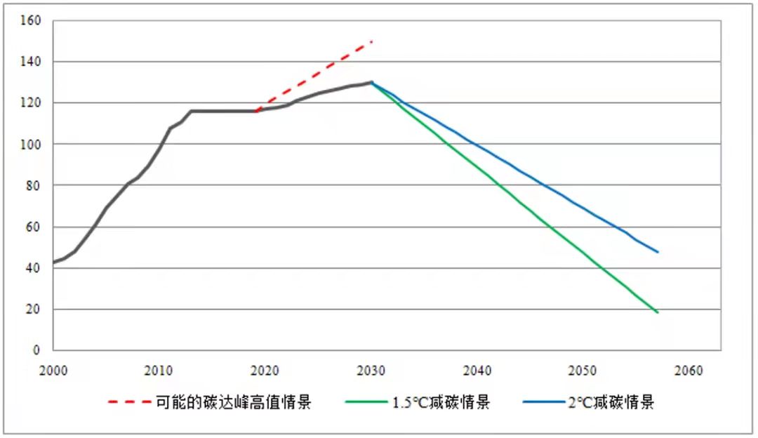 圖2 未來(lái)我國(guó)碳的達(dá)峰和減排情景設(shè)想