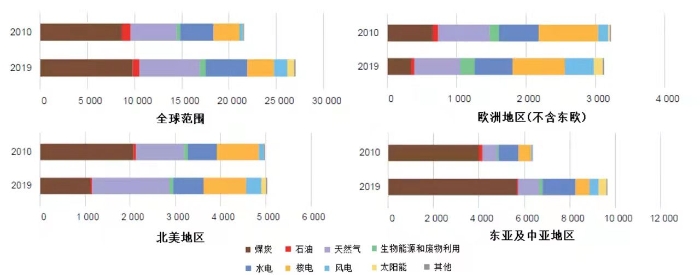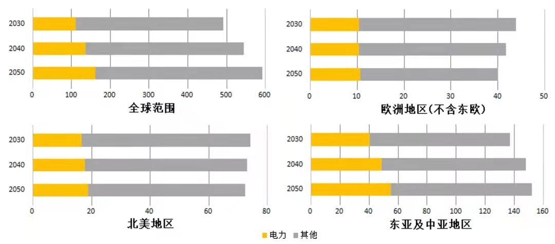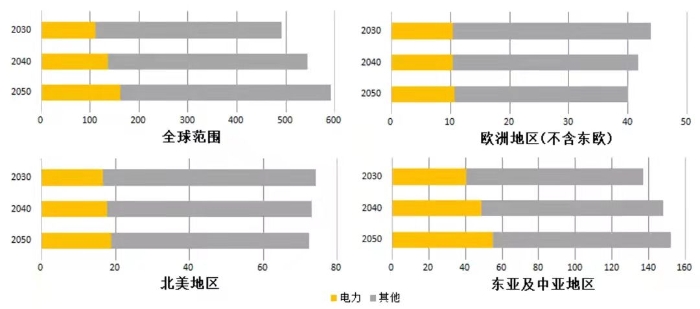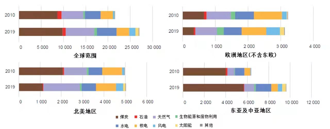 圖4 全球及典型地區(qū)電力供應(yīng)情況(單位:TW·h)