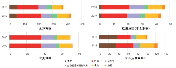 圖3 全球及典型地區(qū)能源消費(fèi)情況(單位:EJ)