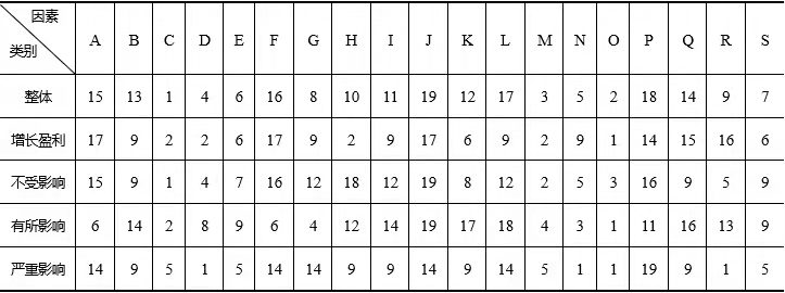 基于問卷數(shù)據(jù),全體企業(yè)受訪者對(duì)影響因素重要性判斷的統(tǒng)計(jì)結(jié)果如表4所示。