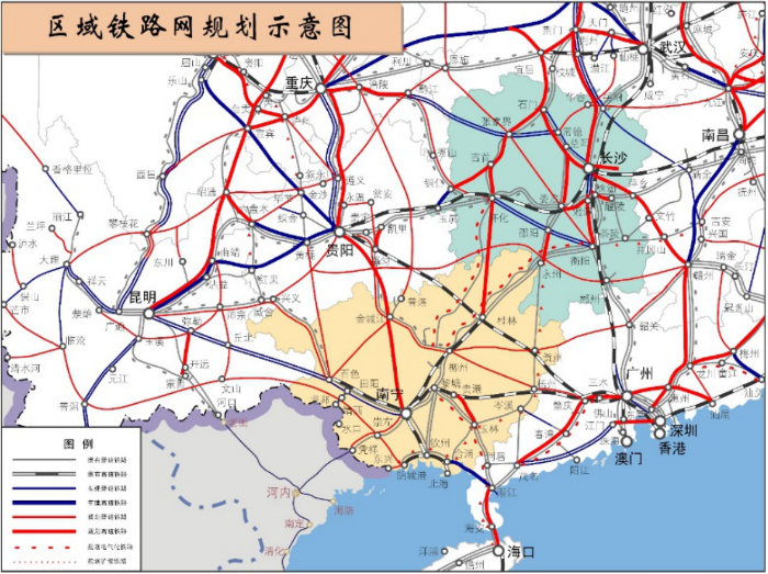 懷桂高鐵北接懷化鐵路樞紐,聯(lián)通既有的滬昆高鐵和正在建設(shè)的張吉懷高鐵,南連桂林、南寧。已于2016列入國家《中長期鐵路網(wǎng)規(guī)劃》規(guī)劃研究項目,也是《國家綜合立體交通網(wǎng)規(guī)劃綱要》二湛通道內(nèi)的遠(yuǎn)期規(guī)劃研究項目。懷桂高鐵為張吉懷鐵路南延線和二湛通道的最南端,與滬昆高鐵一起緊密聯(lián)系長株潭城市群、成渝雙城經(jīng)濟圈、關(guān)中平原城市群、長江經(jīng)濟帶、北部灣城市群、粵港澳大灣區(qū),是構(gòu)筑湘、桂、瓊、粵四地區(qū)北上、南下、西進(jìn)、東出的重要通道,是西部陸海新通道東線的重要組成部分,是西部和華南地區(qū)與東盟連接的重要紐帶,對促進(jìn)我國中西部地區(qū)內(nèi)外連通、通邊達(dá)海具有非常重要的戰(zhàn)略意義。