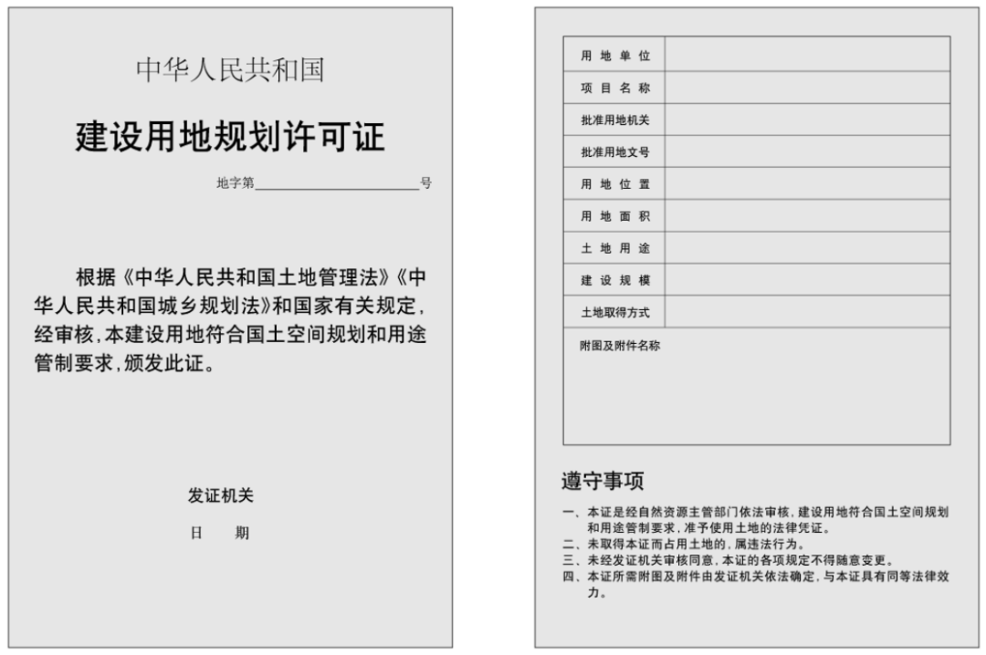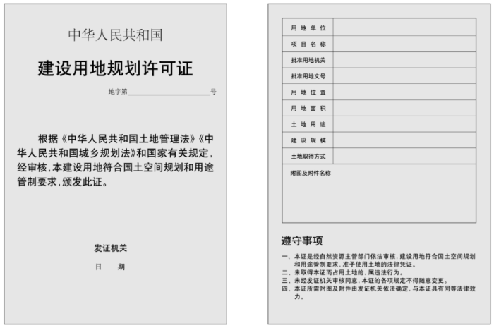 圖1 2019年以后新的建設(shè)用地規(guī)劃許可證(內(nèi)頁)