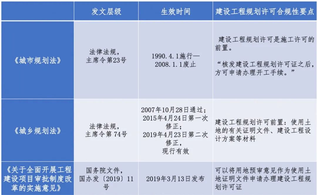 值得一提的是,2019年國務(wù)院辦公廳發(fā)布《關(guān)于全面開展工程建設(shè)項目審批制度改革的實施意見》,提出可以將用地預(yù)審意見作為使用土地證明文件申請辦理建設(shè)工程規(guī)劃許可證。因此,建設(shè)用地規(guī)劃許可不再是建設(shè)用地工程許可的前置要件。