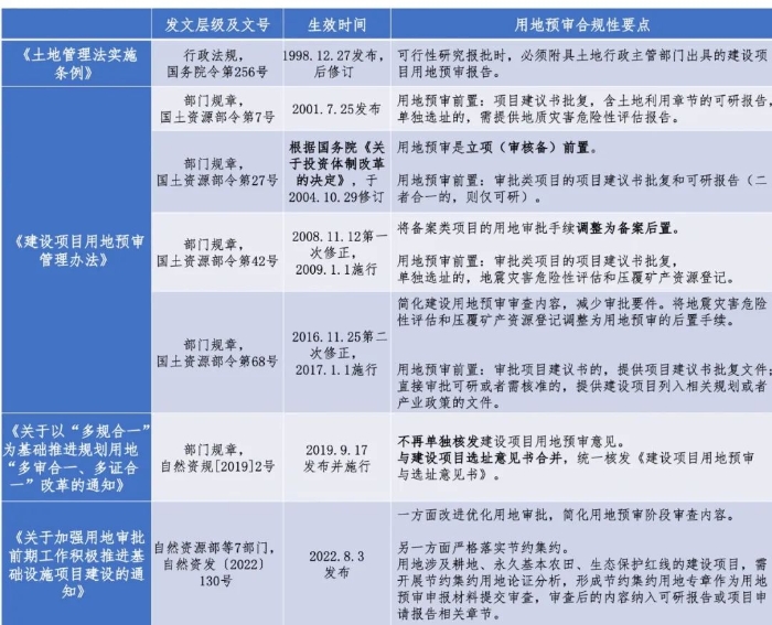 表2 用地預(yù)審手續(xù)沿革及合規(guī)性要點
