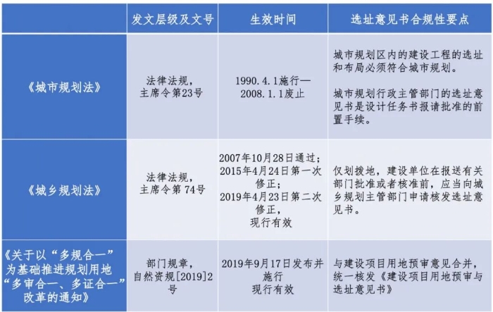 表5 選址意見書手續(xù)沿革及合規(guī)性要點