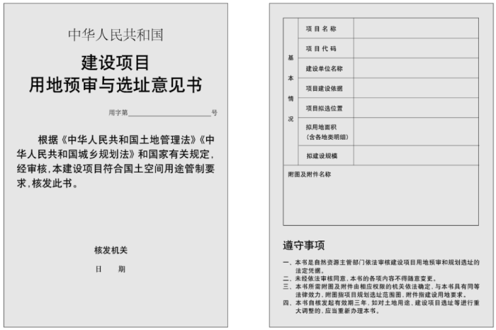 圖2 2019年以后建設(shè)項目用地預(yù)審與選址意見書(內(nèi)頁)