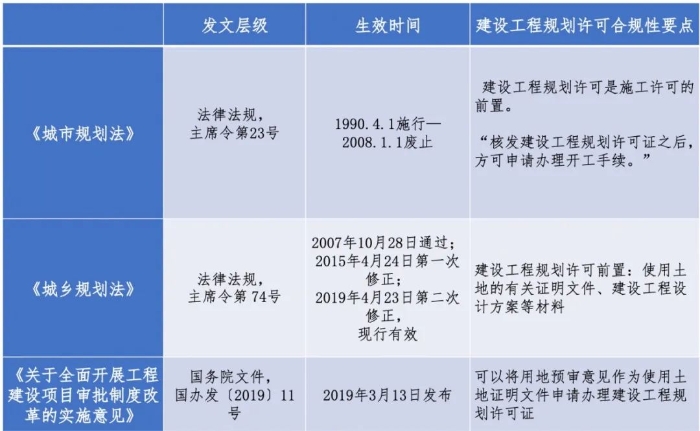 表7 建設(shè)工程規(guī)劃許可手續(xù)沿革及合規(guī)性要點