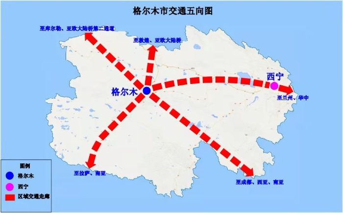 格爾木地處青藏高原腹地,位于祖國西部的地理中心,是國家穩(wěn)藏固疆的戰(zhàn)略要沖、加強西南邊防建設(shè)的保障基地。2015年,青海省委、省政府出臺了深度融入“一帶一路”建設(shè)構(gòu)建對外開放新格局的實施意見,格爾木被確定為青海省對外開放節(jié)點城市之一。2017年1月,國家發(fā)展和改革委員會發(fā)布了《西部大開發(fā)“十三五”規(guī)劃》,構(gòu)畫出西部開發(fā)“五橫兩縱一環(huán)”總體空間格局,格爾木市被確定為京藏通道西段節(jié)點城市,支撐青海藏區(qū)發(fā)展的新增長極。2017年2月,國務(wù)院發(fā)布了《“十三五”現(xiàn)代綜合交通運輸體系發(fā)展規(guī)劃》,格爾木被列為全國性綜合交通樞紐。2018年,國家發(fā)展改革委、交通運輸部發(fā)布了《國家物流樞紐布局和建設(shè)規(guī)劃》,格爾木被規(guī)劃為陸港型國家物流樞紐承載城市。