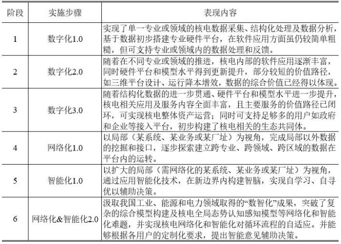 編者按:我國(guó)力爭(zhēng)2030年前實(shí)現(xiàn)碳達(dá)峰、2060年前實(shí)現(xiàn)碳中和,是黨中央經(jīng)過(guò)深思熟慮作出的重大戰(zhàn)略決策,事關(guān)中華民族永續(xù)發(fā)展和構(gòu)建人類(lèi)命運(yùn)共同體。能源領(lǐng)域碳排放總量大、占比高,是實(shí)現(xiàn)綠色低碳轉(zhuǎn)型和高質(zhì)量發(fā)展的關(guān)鍵。公司能源業(yè)務(wù)部成立了以部門(mén)領(lǐng)導(dǎo)為龍頭、以青年黨員為骨干的“3060”研究小組,貫徹新發(fā)展理念和能源安全新戰(zhàn)略,對(duì)以新能源為主體的新型電力系統(tǒng)、碳排放和水電、新能源、核電、儲(chǔ)能、煤炭等方面高質(zhì)量發(fā)展進(jìn)行了探索性研究,以推動(dòng)構(gòu)建清潔低碳安全高效的能源體系。為促進(jìn)研究成果的應(yīng)用,本公眾號(hào)將核心研究成果以系列文章的形式陸續(xù)刊發(fā),供業(yè)界同仁參考。 “兩個(gè)構(gòu)建”背景下核電“數(shù)智化”發(fā)展思路與路徑研究 黃文 丁嵐 柴進(jìn)進(jìn) 摘要:在我國(guó)能源和電力產(chǎn)業(yè),“數(shù)智化”因?qū)δ茉匆嘏渲眯蕛?yōu)化、供需匹配協(xié)調(diào)、綜合能效提升乃至“兩個(gè)構(gòu)建”實(shí)施成效的關(guān)鍵作用,長(zhǎng)期以來(lái)備受各方關(guān)注。但在核電領(lǐng)域,對(duì)于“數(shù)智化”發(fā)展總體目標(biāo)和實(shí)施路徑的研究一直被忽視。鑒于此,本文在總結(jié)相關(guān)行業(yè)經(jīng)驗(yàn)的基礎(chǔ)上,總結(jié)提出核電“數(shù)智化”發(fā)展的總體目標(biāo)及相關(guān)要素,并以當(dāng)前我國(guó)核電發(fā)展現(xiàn)狀及“數(shù)智化”的關(guān)鍵需求為切入點(diǎn),探討形成了近期我國(guó)核電“數(shù)智化”發(fā)展實(shí)施路徑。 關(guān)鍵詞:核電;“數(shù)智化”;總體目標(biāo);BRK模型;發(fā)展路徑 一、引言 當(dāng)前我國(guó)能源和電力產(chǎn)業(yè)正在經(jīng)歷“百年未有之大變局”,在國(guó)家“碳達(dá)峰、碳中和”重大戰(zhàn)略決策指導(dǎo)下,以“兩個(gè)構(gòu)建”(構(gòu)建清潔低碳安全高效的能源體系、構(gòu)建新能源占比逐漸提高/以新能源為主體的新型電力系統(tǒng))為重點(diǎn)任務(wù)的能源綠色低碳轉(zhuǎn)型行動(dòng)正穩(wěn)步推進(jìn)[1]??偨Y(jié)世界能源低碳轉(zhuǎn)型的歷史經(jīng)驗(yàn),其往往與科技革命相伴相生、融合并進(jìn),以工藝技術(shù)的不斷創(chuàng)新和產(chǎn)業(yè)模式的升級(jí)再造等,在能源低碳轉(zhuǎn)型同時(shí)實(shí)現(xiàn)效率提升,推進(jìn)社會(huì)生產(chǎn)力發(fā)展[2]。如能源從木柴到煤炭、煤炭到石油及電力的低碳轉(zhuǎn)型分別與兩次革命中蒸汽機(jī)以及內(nèi)燃機(jī)、發(fā)電機(jī)的發(fā)明和廣泛應(yīng)用密不可分[3]。 目前,全球新一輪科技革命正當(dāng)其時(shí),以大數(shù)據(jù)、云計(jì)算、物聯(lián)網(wǎng)、移動(dòng)互聯(lián)網(wǎng)、人工智能等為代表的“數(shù)智化”(數(shù)字化、網(wǎng)絡(luò)化、智能化)技術(shù)及產(chǎn)業(yè)正不斷壯大,已實(shí)際成為這一輪變革的核心驅(qū)動(dòng)和關(guān)鍵內(nèi)容。在我國(guó),“數(shù)智化”技術(shù)也在全面滲透基礎(chǔ)工業(yè)及經(jīng)濟(jì)社會(huì)發(fā)展,不僅全面影響和改變了人們的生產(chǎn)生活方式,并已催生和推動(dòng)我國(guó)數(shù)字經(jīng)濟(jì)向更繁榮、更深化和更規(guī)范的階段發(fā)展[4]。 在我國(guó)能源和電力產(chǎn)業(yè),“數(shù)智化”也因?qū)δ茉匆嘏渲眯蕛?yōu)化、供需匹配協(xié)調(diào)、綜合能效提升乃至“兩個(gè)構(gòu)建”實(shí)施成效的關(guān)鍵作用,長(zhǎng)期以來(lái)備受各方關(guān)注。圍繞如何通過(guò)“數(shù)智化”發(fā)展促進(jìn)我國(guó)能源低碳轉(zhuǎn)型,不少學(xué)者及相關(guān)機(jī)構(gòu)已開(kāi)展了大量研究。具體研究分為三類(lèi),第一類(lèi)是以能源互聯(lián)網(wǎng)框架下的綜合能源系統(tǒng)為載體,聚焦“數(shù)智化”技術(shù)對(duì)多能源參與調(diào)節(jié)的支撐作用[5-7],保障能源安全供應(yīng)和高效匹配;第二類(lèi)是以“雙碳目標(biāo)”下新型電力市場(chǎng)為載體,研究能源系統(tǒng)和市場(chǎng)數(shù)據(jù)的互聯(lián)互通、有機(jī)耦合[8-10],實(shí)現(xiàn)系統(tǒng)能效和市場(chǎng)績(jī)效提升;第三類(lèi)則從“數(shù)智化”自身出發(fā),對(duì)在能源各行業(yè)的相關(guān)理念、關(guān)鍵技術(shù)及應(yīng)用前景進(jìn)行闡述[11-13]。目前這些研究多關(guān)注于能源流通和消費(fèi)領(lǐng)域,如電網(wǎng)和電力市場(chǎng),生產(chǎn)領(lǐng)域則以火電、可再生能源或圍繞其建立的綜合能源系統(tǒng)為主要研究對(duì)象,如“源網(wǎng)荷儲(chǔ)”“風(fēng)光水火儲(chǔ)”等,對(duì)核電“數(shù)智化”發(fā)展的研究分析相對(duì)較少。 現(xiàn)有對(duì)核電“數(shù)智化”發(fā)展的研究,集中在各核電集團(tuán)運(yùn)行技術(shù)部門(mén)或核電運(yùn)營(yíng)單位開(kāi)展。如汪映榮、徐國(guó)彬、伍吉澤和干依燃等[14-17]分別論述了數(shù)字化核電廠的定義、5層模型、功能架構(gòu)和關(guān)鍵技術(shù)等。潘保林、王謙和張陸洋等[18-20]分別研究分