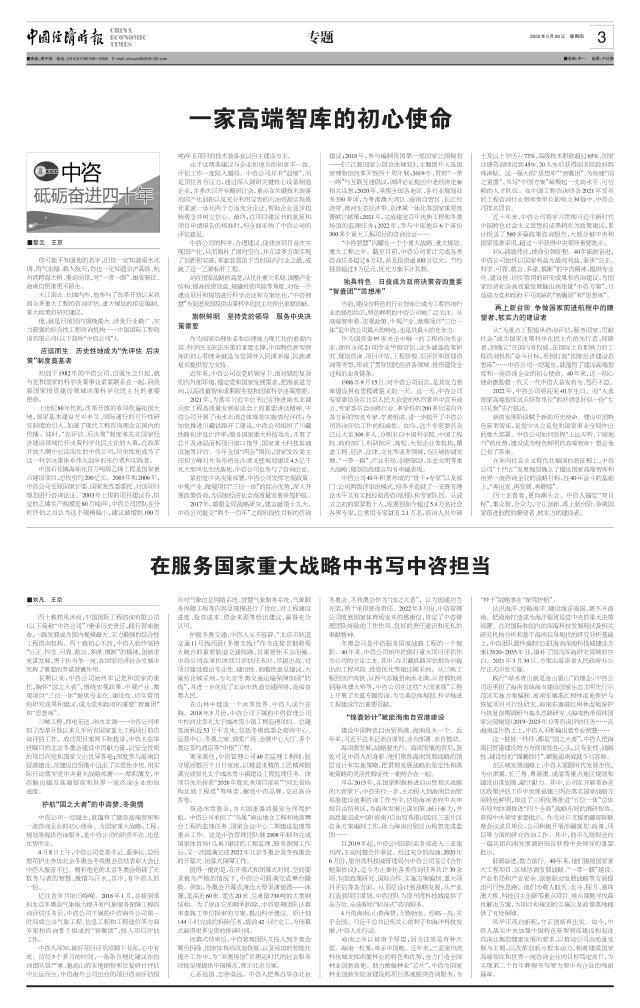 長期以來,中咨公司始終牢記黨和國家的重托,胸懷“國之大者”,圍繞宏觀政策、中觀產(chǎn)業(yè)、微觀項目“三位一體”提供專業(yè)化、建設性、切實管用的研究成果和建議,成為黨和政府的重要“智囊團”和“思想庫”。