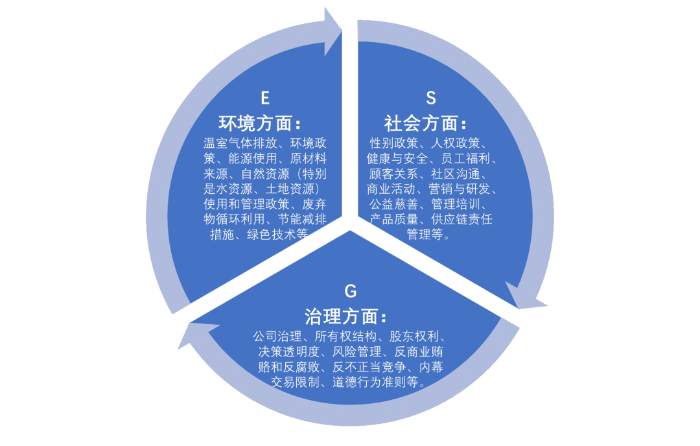ESG是英文Environmental(環(huán)境)、Social(社會)和Governance(治理)的縮寫,是一種關(guān)注企業(yè)環(huán)境、社會、治理績效而非財(cái)務(wù)績效的投資理念和企業(yè)評價(jià)標(biāo)準(zhǔn)?;贓SG評價(jià),投資者可以評估其投資行為和企業(yè)(投資對象)在促進(jìn)經(jīng)濟(jì)可持續(xù)發(fā)展、履行社會責(zé)任等方面的貢獻(xiàn)。