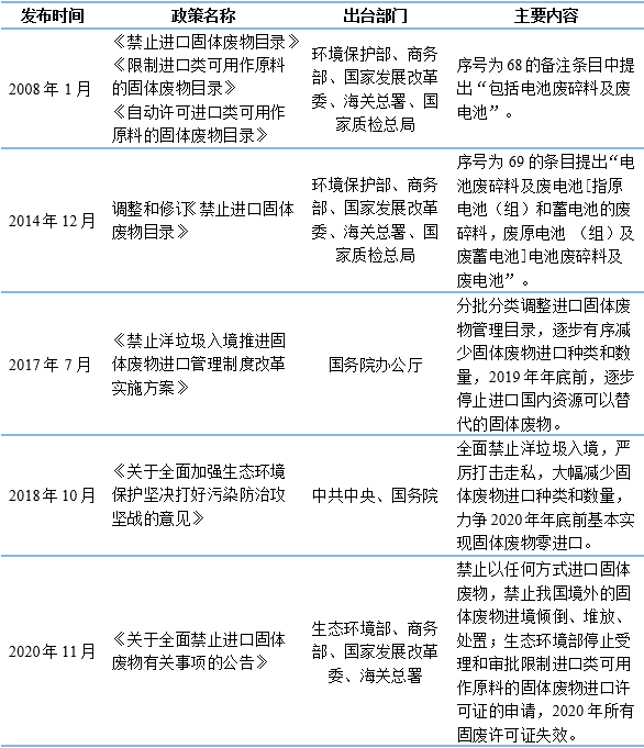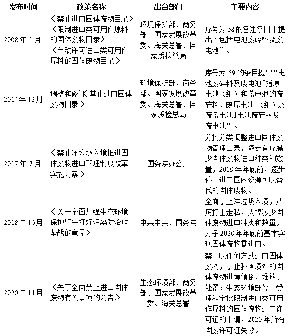 當前,國外廢舊電池出口存在一定政策障礙,我國進口政策日益趨嚴。