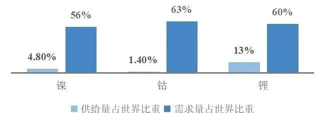 我國鎳、鈷、鋰等關(guān)鍵資源的國內(nèi)儲量有限,鈷、鎳資源嚴重缺乏供應(yīng)保障,鋰資源因成本和產(chǎn)量因素導(dǎo)致供給短缺。