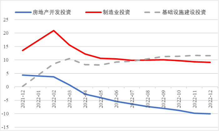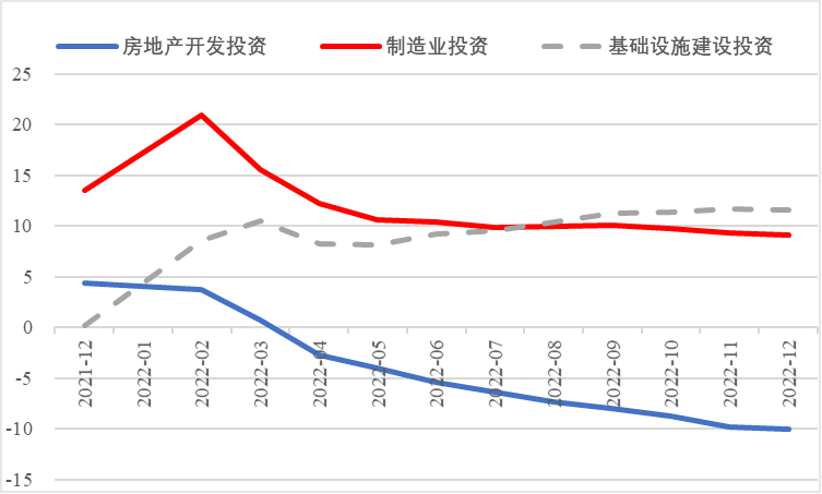 2022年,面對復雜嚴峻的國際環(huán)境和國內疫情挑戰(zhàn),我國投資整體表現較強韌性,對穩(wěn)定經濟基本盤發(fā)揮了壓艙石作用?;A設施和部分制造業(yè)成為穩(wěn)投資的重點領域,中西部地區(qū)投資增長動能強勁。同時,制造業(yè)承壓加劇、房地產投資下行、地方債高壓、社融需求走弱等突出問題制約投資持續(xù)穩(wěn)定增長,穩(wěn)投資壓力仍然較大。做好2023年投資促進工作,關鍵是把擴大有效投資同優(yōu)化供給結構有機結合起來,持續(xù)擴大高技術產業(yè)投資,多舉措穩(wěn)定房地產投資,更好發(fā)揮政府投資的引導作用,充分釋放社會投資需求潛能。 一、固定資產投資整體運行情況 (一)整體投資韌性超出預期,民間投資呈下行趨勢 2022年1—12月,我國固定資產投資(不含農戶,下同)572138億元,同比增長5.1%。一季度投資增速達到9.3%的年內高點,上半年、前三季度分別降至6.1%、5.9%,年初投資增速較高的重要原因是2022年專項債部分限額提前下達等系列政策發(fā)揮效果,之后受國外地緣政治沖突、國內疫情多點散發(fā)等因素影響,投資增速有所下降,但降幅逐季收窄。一季度、上半年、前三季度、全年固定資產投資增速分別較同期國內生產總值增速高了4.5個、3.6個、2.9個和2.1個百分點,投資成為當前穩(wěn)定宏觀經濟大盤的關鍵力量。 圖1 全國固定資產投資增速 (累計同比,%) 數據來源:國家統計局 1—12月,我國固定資產投資三年平均增速為4.3%,低于2019年同期1.1個百分點,全面恢復到疫情前水平仍需一定時間。尤其是民間投資受疫情沖擊較為嚴重,復蘇難度較大。一季度、上半年、前三季度、全年民間投資分別同比增長8.4%、3.5%、2%、0.9%,低于整體投資增速0.9個、2.6個、3.9個、4.2個百分點,與整體投資增速的差距逐季拉大。從占比看,截至12月底民間投資累計占固定資產投資的比重已降至54.2%,低于2019年同期2.2個百分點。 圖2 民間投資增速及占比(%) 數據來源:國家統計局,Wind數據庫 (二)基礎設施、制造業(yè)投資支撐作用明顯,房地產市場持續(xù)低迷 制造業(yè)投資在外需帶動和政策支撐下展現較強韌性,2022年1—12月制造業(yè)投資同比增長9.1%,比整體投資高4個百分點。在內需受疫情影響明顯收縮的情況下,制造業(yè)投資超預期增長很大程度上得益于外需對出口的拉動。我國全年貨物出口額累計同比增長10.5%,裝備制造、消費品制造等領域海外訂單持續(xù)旺盛,機電產品占進出口總額的49.1%,汽車出口大幅增長82.2%。技改投資繼續(xù)發(fā)揮對制造業(yè)投資的拉動作用。1—11月,制造業(yè)企業(yè)技改投資同比增長9.1%,占全部制造業(yè)投資的比重達40.9%。 基礎設施投資在增加政策性開發(fā)性金融工具額度、用好專項債等融資支持政策以及各地區(qū)各部門積極貫徹落實穩(wěn)增長系列政策推動下,連續(xù)8個月回升,1—12月同比增長9.4%,高于全部投資增速4.3個百分點。其中,水利管理業(yè)投資和公共設施管理業(yè)投資分別大幅增長13.6%、10.1%。 表1 1-12月我國各行業(yè)固定資產投資情況 2022年受需求走弱影響,房地產開發(fā)投資增速持續(xù)放緩,一季度僅同比增長0.7%,二季度開始滑落至負增長區(qū)間。1—12月我國房地產開發(fā)投資同比下降10%,降幅較前三季度、上半年分別擴大2個、4.6個百分點,跌幅持續(xù)加深,拖累固定資產投資整體增長。房企土地購置費、施工面積、新開工面積等指標均出現持續(xù)大幅下降。1—12月,房地產開發(fā)景氣指數均位于100以下,且自2月以來持續(xù)走低。 圖3 三大領域固定資產投資增速 (累計同比,%) 數據來源:國家統計局,Wind數據庫 高技術產業(yè)投資引領作用持續(xù)增強。在投資整體下行壓力加大的情況下,高技術產業(yè)投資逆勢而上,穩(wěn)投資引領作用持續(xù)顯現。2022年高技術產業(yè)投資同比增長18.9%,比全部投資增速高13.8個百分點。分類別看,高技術制造業(yè)投資同比增長22.2%,比制造業(yè)整體投資高了13.1個百分點,其中電子及通信設備制造業(yè)投資增長27.2%,醫(yī)療儀器設備及儀器儀表制造業(yè)投資增長27.6%,電子、醫(yī)藥制造業(yè)投資大幅增加;高技術服務業(yè)投資同比增長12.1%,其中科技成果轉化服務業(yè)投資增長26.4%,研發(fā)設計服務業(yè)投資增長19.8%,企業(yè)研發(fā)投入顯著加大。 圖4 高技術產業(yè)投資增速對比整體投資增速 (累計同比,%) 數據來源:國家統計局,Wind數據庫 (三)中西部地區(qū)投資增長動力較強,東北地區(qū)增速止跌回升 2022年1—12月,東部地區(qū)投資同比增長3.6%,較前三季度、上半年、一季度分別回落0.7個、0.9個、5.9個百分點;中部地區(qū)投資增長8.9%,較前三季度、上半年、一季度分別回落1.1個、1.8個、5.5個百分點;西部地區(qū)投資增長4.7%,較前三季度、上半年、一季度分別回落2個、3.3個、6.6個百分點;東北地區(qū)投資增長1.2%,較前三季度、上半年、一季度分別提升1個、2.1個、2.6個百分點??偟膩砜?,中部和西部地區(qū)投資保持較快增長,東部地區(qū)增速較低,東北地區(qū)投資在上半年負增長的基礎上止跌,呈恢復增長態(tài)勢。 圖5 分地區(qū)固定資產投資增速 (累計同比,%) 數據來源:國家統計局,Wind數據庫 1—11月,31個省份中有16個省投資增速高于全國水平,其中內蒙古、湖北、寧夏、甘肅等4省實現兩位數增長,增速分