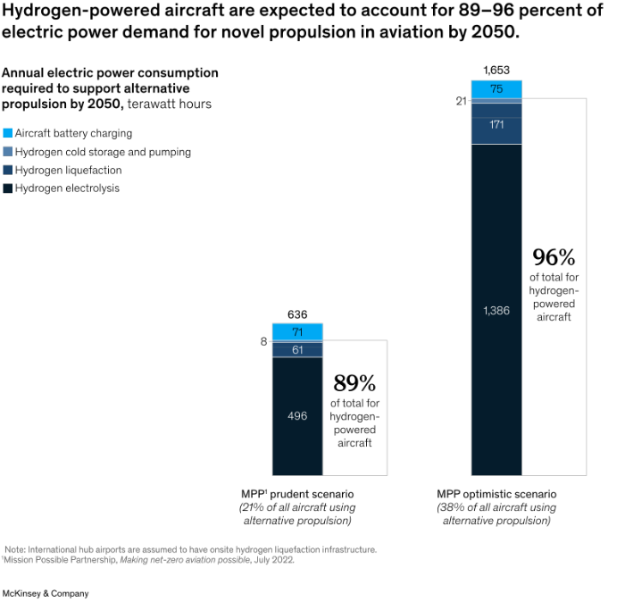 圖1 到2050年,氫動(dòng)力飛機(jī)預(yù)計(jì)占航空產(chǎn)業(yè)新型推進(jìn)器電力需求的89%-96%