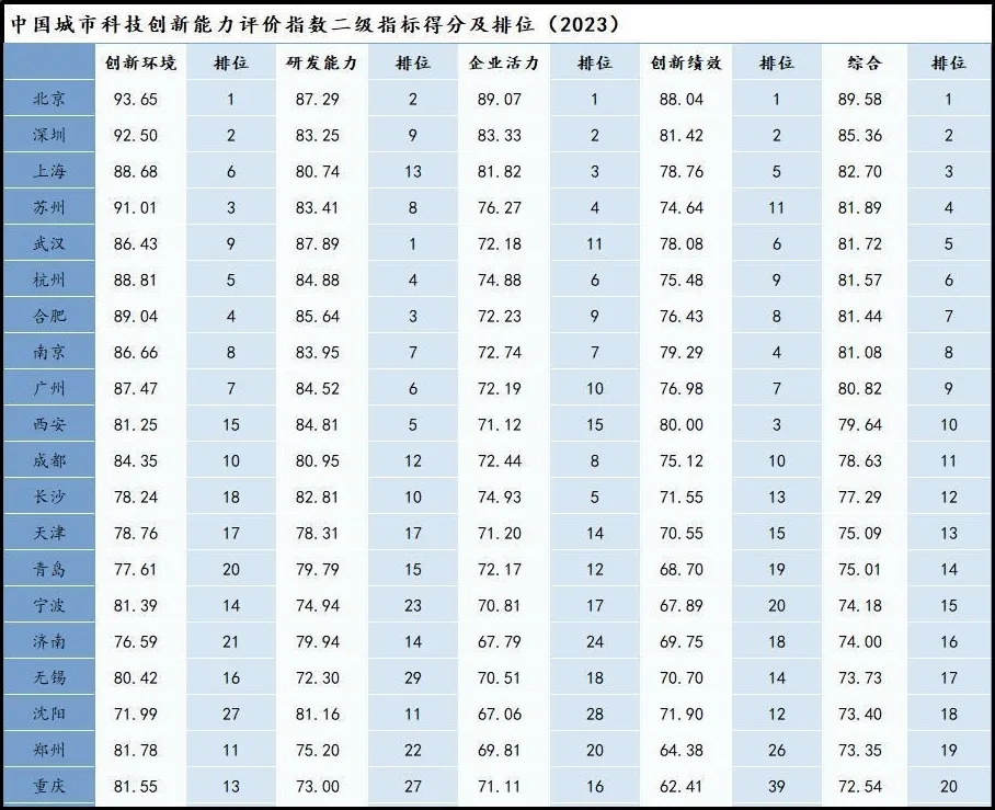 一、城市發(fā)展活力與科技創(chuàng)新能力