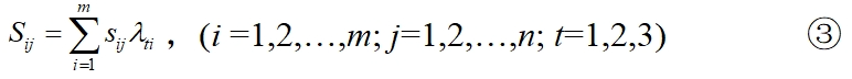 其中Sij表示城市j第i個(gè)指標(biāo)對(duì)系統(tǒng)的貢獻(xiàn)大小;
