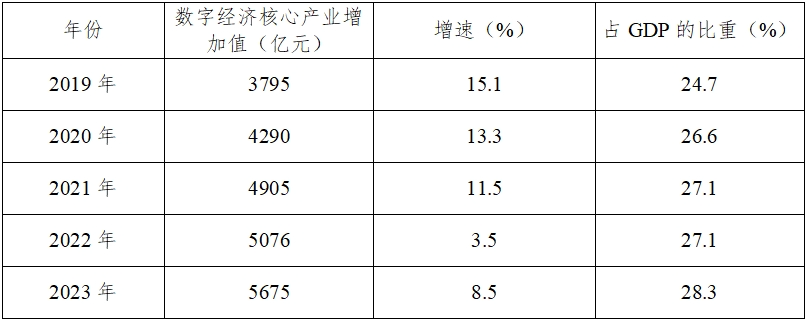 表1 杭州市2019-2023年數(shù)字經(jīng)濟(jì)發(fā)展情況表