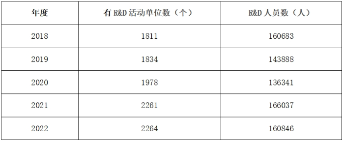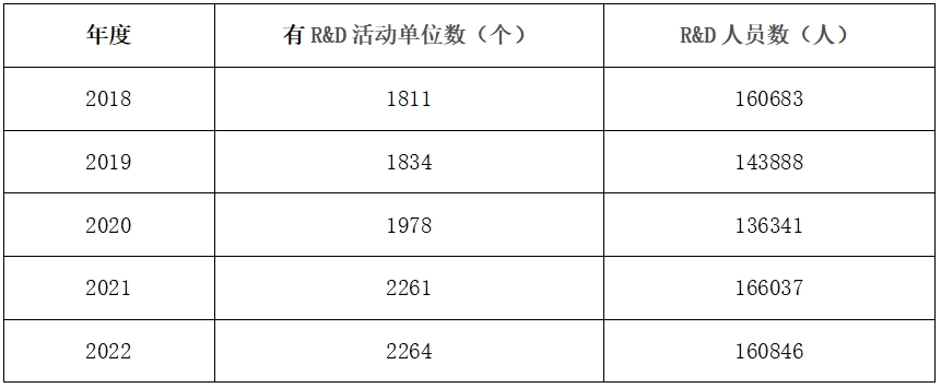 表3 天津市2018-2023年R&D單位及人員統(tǒng)計(jì)表