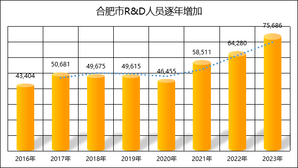 圖3 合肥市2016-2023年R&D人員情況變化