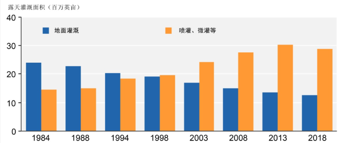 美國(guó)和我國(guó)的實(shí)踐證明,科學(xué)化、精細(xì)化的灌溉方式是農(nóng)業(yè)技術(shù)進(jìn)步和生產(chǎn)效率提升的成效之一,實(shí)現(xiàn)了農(nóng)作物產(chǎn)量增長(zhǎng),灌溉用水量減少。隨著我國(guó)人口老齡化進(jìn)程加速,未來(lái)我國(guó)農(nóng)業(yè)生產(chǎn)和經(jīng)營(yíng)模式走規(guī)?;I(yè)化之路是必然趨勢(shì),綜合節(jié)能、節(jié)肥、節(jié)省人力、提升耕地質(zhì)量和提高糧食產(chǎn)量、保護(hù)環(huán)境等現(xiàn)實(shí)要求,我國(guó)提高灌溉用水效率空間很大。