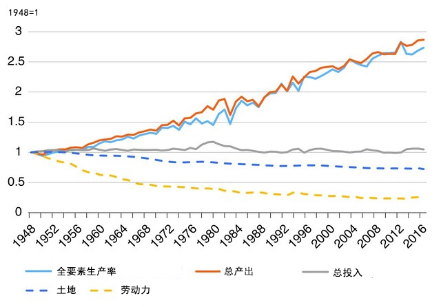圖16 1948-2016年美國(guó)農(nóng)業(yè)全要素生產(chǎn)率變化態(tài)勢(shì)