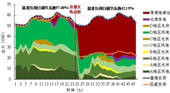 計(jì)及源-荷匹配的多區(qū)域多類型新能源 系統(tǒng)優(yōu)化規(guī)劃方法 史昭娣 朱寧 陳琦 摘要:合理利用新能源出力之間的互補(bǔ)性可平抑其出力波動(dòng)性,在新能源規(guī)劃中考慮互補(bǔ)性可令新能源規(guī)劃布局更為合理?;诖?,本文考慮新能源出力互補(bǔ)性,研究計(jì)及源-荷匹配的新能源優(yōu)化布局方法.利用新能源總出力與負(fù)荷的正相關(guān)特性,以保持新能源總出力與負(fù)荷的動(dòng)態(tài)平衡。首先,基于源-荷匹配思想,提出了描述新能源出力與負(fù)荷貼近程度和正相關(guān)程度的均衡度指標(biāo)以及一致性指標(biāo)。然后,建立了計(jì)及源-荷匹配的多區(qū)域新能源優(yōu)化規(guī)劃模型,并通過引入新能源出力與負(fù)荷匹配均衡度約束來保證兩者變化特性相一致。最后,以我國(guó)北方地區(qū)某區(qū)域電網(wǎng)為例進(jìn)行算例分析,研究結(jié)果表明,計(jì)及源-荷匹配的新能源優(yōu)化規(guī)劃可以綜合考慮新能源消納率和滲透率,為考慮新能源出力互補(bǔ)性的新能源規(guī)劃布局提供解決方案。 關(guān)鍵詞:新能源;互補(bǔ)性;電源規(guī)劃;源荷匹配;光熱電站;容量配置 一、引言 隨著能源轉(zhuǎn)型進(jìn)程加快,我國(guó)大力發(fā)展風(fēng)電[1]、光伏[2]等新能源發(fā)電技術(shù),未來電力系統(tǒng)將朝著大規(guī)模、高比例新能源電力系統(tǒng)方向發(fā)展[3]。新能源出力自身之間具有互補(bǔ)性,利用新能源總出力與系統(tǒng)總負(fù)荷之間的匹配效應(yīng)可以凸顯新能源出力間的互補(bǔ)效果,平抑新能源出力波動(dòng)性,減小常規(guī)機(jī)組調(diào)峰壓力[4]。 風(fēng)電、光伏的出力功率波動(dòng)性強(qiáng)[5-6],大規(guī)模接入后會(huì)對(duì)系統(tǒng)造成沖擊,對(duì)電網(wǎng)調(diào)峰帶來挑戰(zhàn)[7-8]。實(shí)際上,風(fēng)電和光伏出力具有互補(bǔ)特性[9],其主要表現(xiàn)在兩方面:一是新能源資源的廣域平滑效應(yīng)。二是風(fēng)光出力具有時(shí)間上的互補(bǔ)性。 充分挖掘新能源出力互補(bǔ)特性是開展新能源協(xié)調(diào)規(guī)劃的重要基礎(chǔ)。已有學(xué)者對(duì)此進(jìn)行研究,如文獻(xiàn)[10]分析了各類能源的互補(bǔ)效應(yīng),討論了配置不同容量電源的經(jīng)濟(jì)性和可行性。文獻(xiàn)[11]分析了風(fēng)、光、水資源之間的互補(bǔ)特性,提出了一種包含風(fēng)、光、水、儲(chǔ)的互補(bǔ)性微電網(wǎng)容量?jī)?yōu)化配置方法。文獻(xiàn)[12]研究了新能源出力互補(bǔ)優(yōu)化方法,定量計(jì)算了各類資源容量。上述文獻(xiàn)關(guān)于系統(tǒng)電源出力互補(bǔ)性進(jìn)行了研究,但對(duì)于新能源出力互補(bǔ)性的分析多是與常規(guī)電源一起考慮,未有研究?jī)H考慮新能源出力自身互補(bǔ)性。 研究新能源出力自身互補(bǔ)特征,通常需要提出互補(bǔ)性評(píng)價(jià)指標(biāo)[13]。如文獻(xiàn)[14]采用新能源總出力的標(biāo)準(zhǔn)差作為評(píng)價(jià)指標(biāo)來刻畫新能源出力互補(bǔ)性。文獻(xiàn)[15]定義了由時(shí)間互補(bǔ)、能量互補(bǔ)和振幅互補(bǔ)組成的可再生能源互補(bǔ)性指標(biāo)。文獻(xiàn)[16]采用互補(bǔ)系數(shù)等指標(biāo)描述多能互補(bǔ)系統(tǒng)中電源出力的互補(bǔ)性。以上關(guān)于新能源互補(bǔ)性的研究多注重新能源出力之間的負(fù)相關(guān)性,即假定新能源場(chǎng)站的總出力恒定不變,則認(rèn)為新能源互補(bǔ)效果最好。 由于負(fù)荷具有波動(dòng)性,上述基于負(fù)相關(guān)性的研究中,負(fù)荷波動(dòng)部分會(huì)由常規(guī)可控電源負(fù)擔(dān)。但如果新能源總出力與負(fù)荷波動(dòng)規(guī)律保持一致,即新能源出力與負(fù)荷之間存在匹配效應(yīng),那么新能源發(fā)電就可承擔(dān)一部分變化的負(fù)荷,火電機(jī)組更多承擔(dān)基荷并運(yùn)行在較低的水平,從而大幅降低新能源接入系統(tǒng)帶來的常規(guī)電源調(diào)峰壓力。因此,從提高新能源消納方面看,新能源出力與負(fù)荷之間的匹配(源-荷匹配)關(guān)系才更可凸顯新能源互補(bǔ)的效果[17],此時(shí)互補(bǔ)性表現(xiàn)為新能源總出力與負(fù)荷呈正相關(guān)性。 針對(duì)源-荷匹配效果的描述,已有學(xué)者進(jìn)行了研究。如文獻(xiàn)[18]定義了負(fù)荷追蹤度指標(biāo)用以評(píng)價(jià)不同電源互補(bǔ)效果。文獻(xiàn)[19]采用負(fù)荷追蹤系數(shù)描述系統(tǒng)出力跟隨負(fù)荷變化的能力,并用其量化多能互補(bǔ)系統(tǒng)總發(fā)電量與負(fù)荷的匹配程度。文獻(xiàn)[20]以新能源出力與負(fù)荷之差的平方和最小為目標(biāo),提出了新能源出力追蹤控制算法。上述利用負(fù)荷追蹤能力來描述系統(tǒng)源-荷匹配效果的評(píng)價(jià)方法主要是用于新能源電力系統(tǒng)優(yōu)化調(diào)度中,本文借鑒這種方法,將其應(yīng)用于新能源電源優(yōu)化規(guī)劃中,可在規(guī)劃階段充分計(jì)及多類型新能源出力間的互補(bǔ)特性。 基于以上分析,本文針對(duì)計(jì)及源-荷匹配的廣域多區(qū)域新能源電源優(yōu)化布局問題進(jìn)行研究。首先,為了量化新能源出力與負(fù)荷之間有功功率的匹配能力,從均衡度和一致性兩方面評(píng)價(jià)源-荷匹配特性。其次,基于源-荷匹配