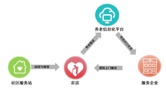 圖3 家庭+信息化平臺(tái)+服務(wù)企業(yè)+社區(qū)服務(wù)站模式示意