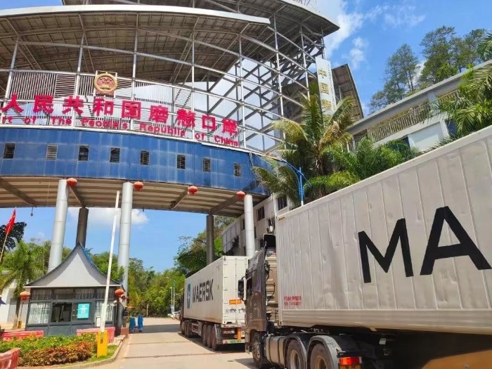 中老鐵路的中國景洪至老撾萬象段為單線設計,采用客貨混運模式,貨物運輸時速上限120公里,設計年過貨能力500萬噸。2024年跨境貨運量達478萬噸,同比增長8.4%。綜合整體數(shù)據(jù),實際跨境貨運量已接近設計上限。隨著中老鐵路向泰國延伸,以及跨境貨運需求持續(xù)增長,運力不足、運輸負荷過重等問題將進一步加劇。此外,現(xiàn)有磨憨、磨丁公路口岸僅設一條出入境通道,且客貨不分流,高峰期易造成口岸擁堵,亟須規(guī)劃增設鐵路副線或貨運專線,推進公路口岸擴能改造與提升工程,全面提升磨憨陸路口岸貨運效能。